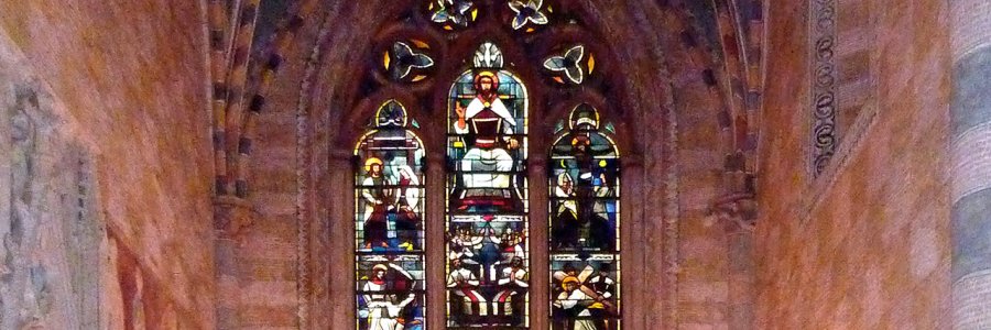 Le dimanche, à dix heures et deux minutes, les cloches de l'abbatiale se mettent à sonner. Ca laisse le temps de s'habiller et de descendre, elles sonneront jusque 10h15. On arrive quand même une ou deux minutes en retard... Pschit sur les mains, masques sur la figure,...